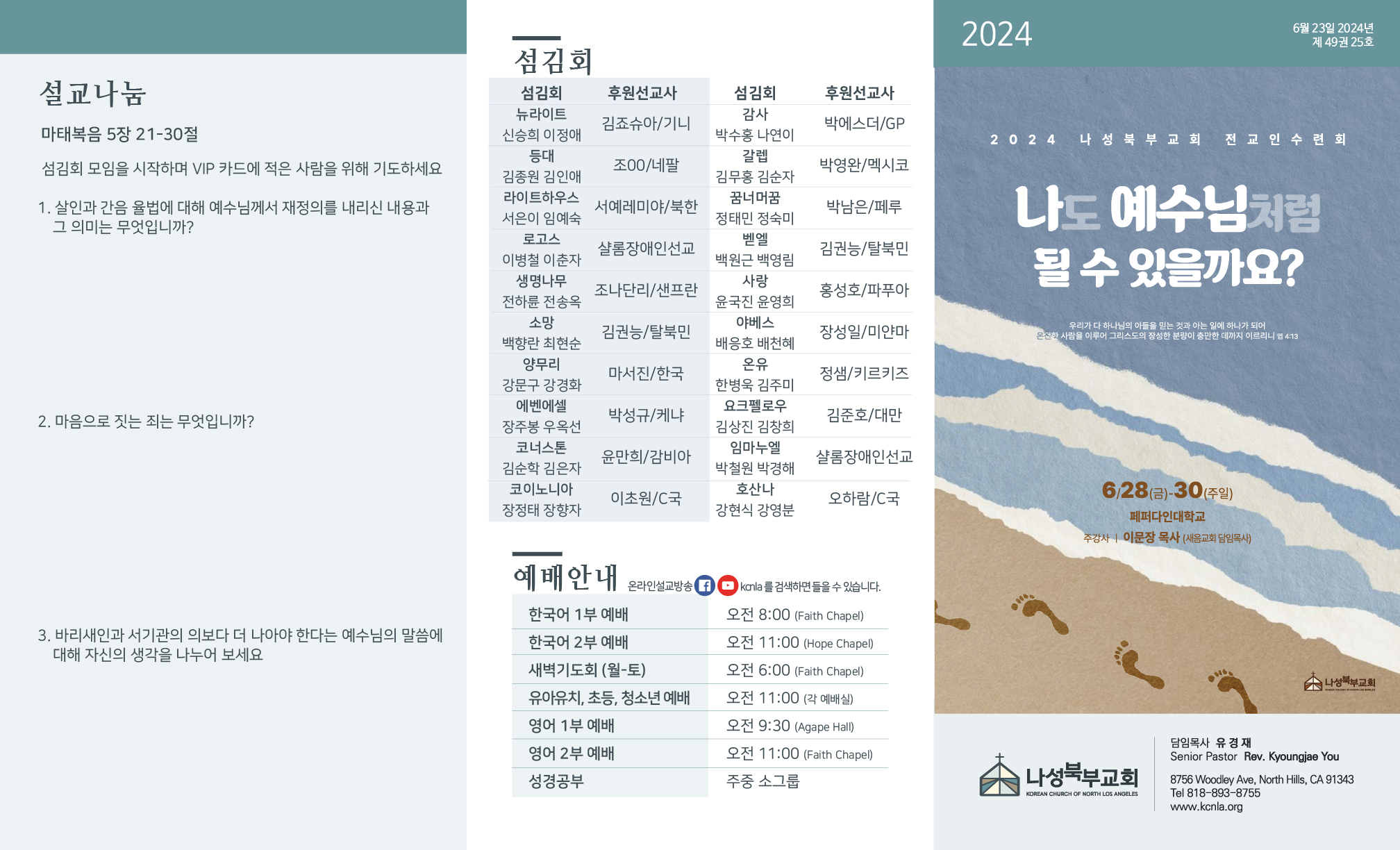 2024년 6월 23일 교회주보 페이지 정보 작성자 나성북부교회 댓글 0건 조회 3,648회 작성일 24-06-26 07:43 목록 본문 2024년 6월 23일 교회주보 이전글2024년 7월 7일 교회주보 24.07.10 다음글2024년 6월 16일 교회주보 24.06.18 목록 댓글 0 댓글목록 등록된 댓글이 없습니다.