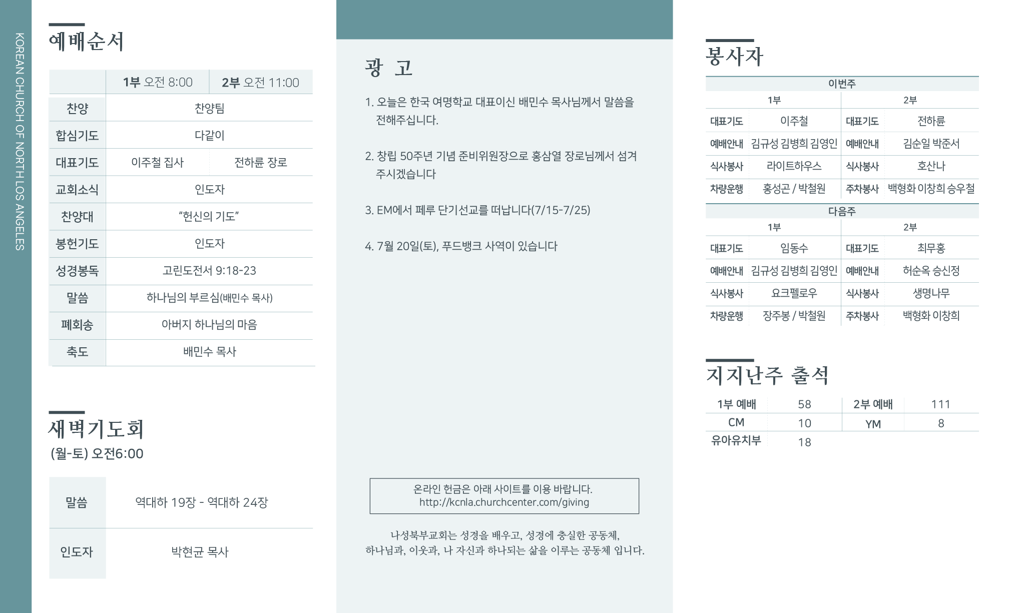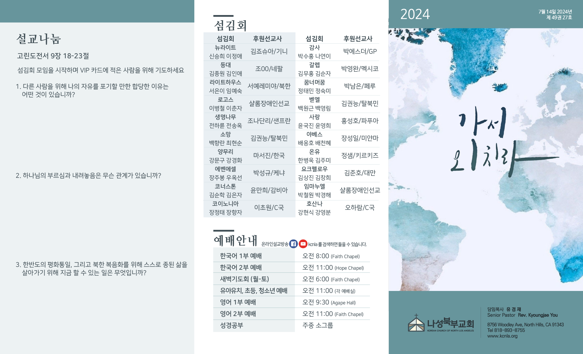 2024년 7월 14일 교회주보 페이지 정보 작성자 나성북부교회 댓글 0건 조회 3,704회 작성일 24-07-16 10:53 목록 본문 2024년 7월 14일 교회주보 이전글2024년 7월 21일 교회주보 24.07.23 다음글2024년 7월 7일 교회주보 24.07.10 목록 댓글 0 댓글목록 등록된 댓글이 없습니다.