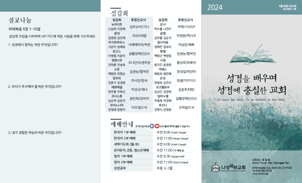 2024년 4월 28일 교회주보 페이지 정보 작성자 나성북부교회 댓글 0건 조회 3,418회 작성일 24-05-01 12:34 목록 본문 2024년 4월 28일 교회주보 이전글2024년 5월 5일 교회주보 24.05.07 다음글2024년 4월 21일 교회주보 24.04.24 목록 댓글 0 댓글목록 등록된 댓글이 없습니다.