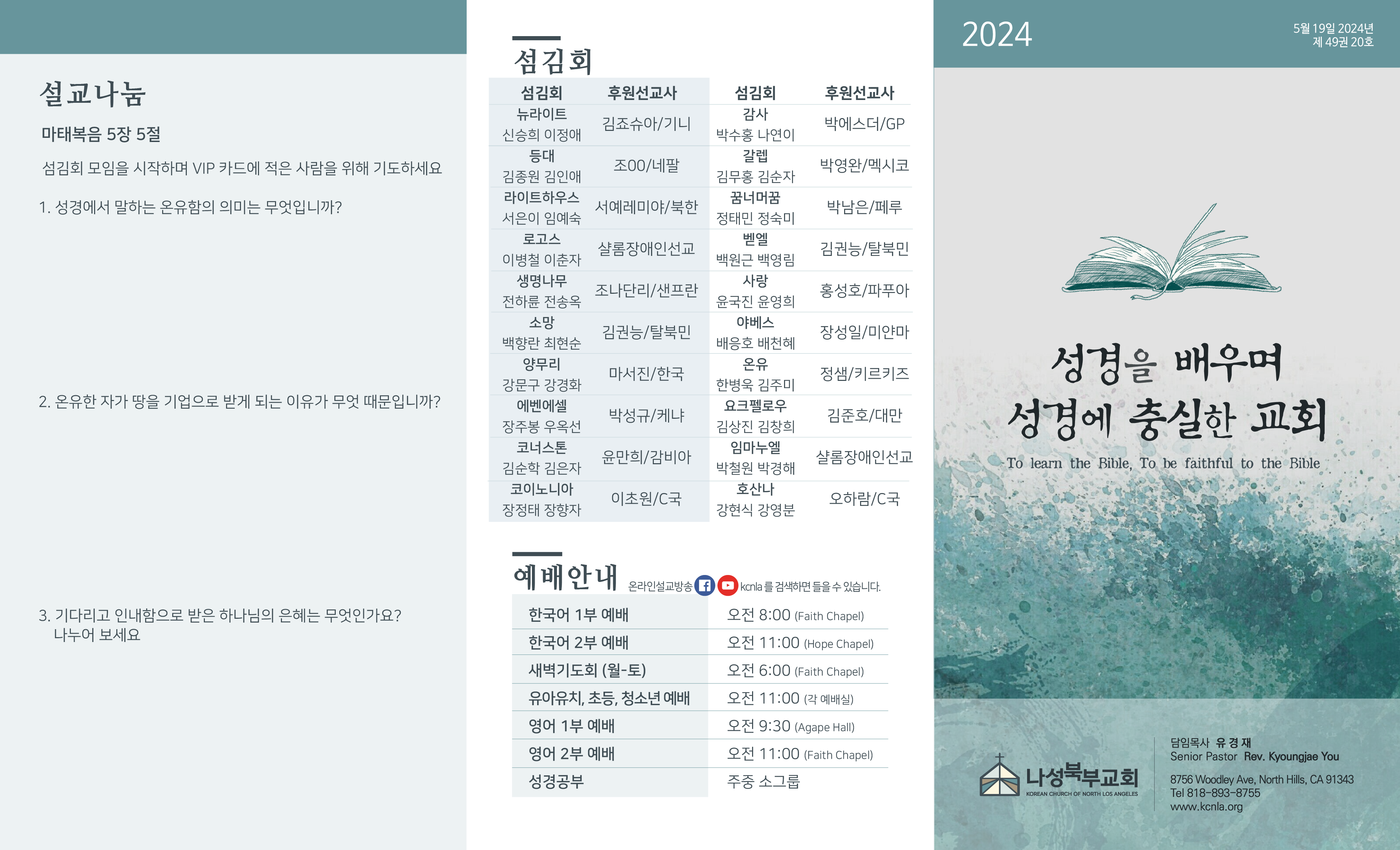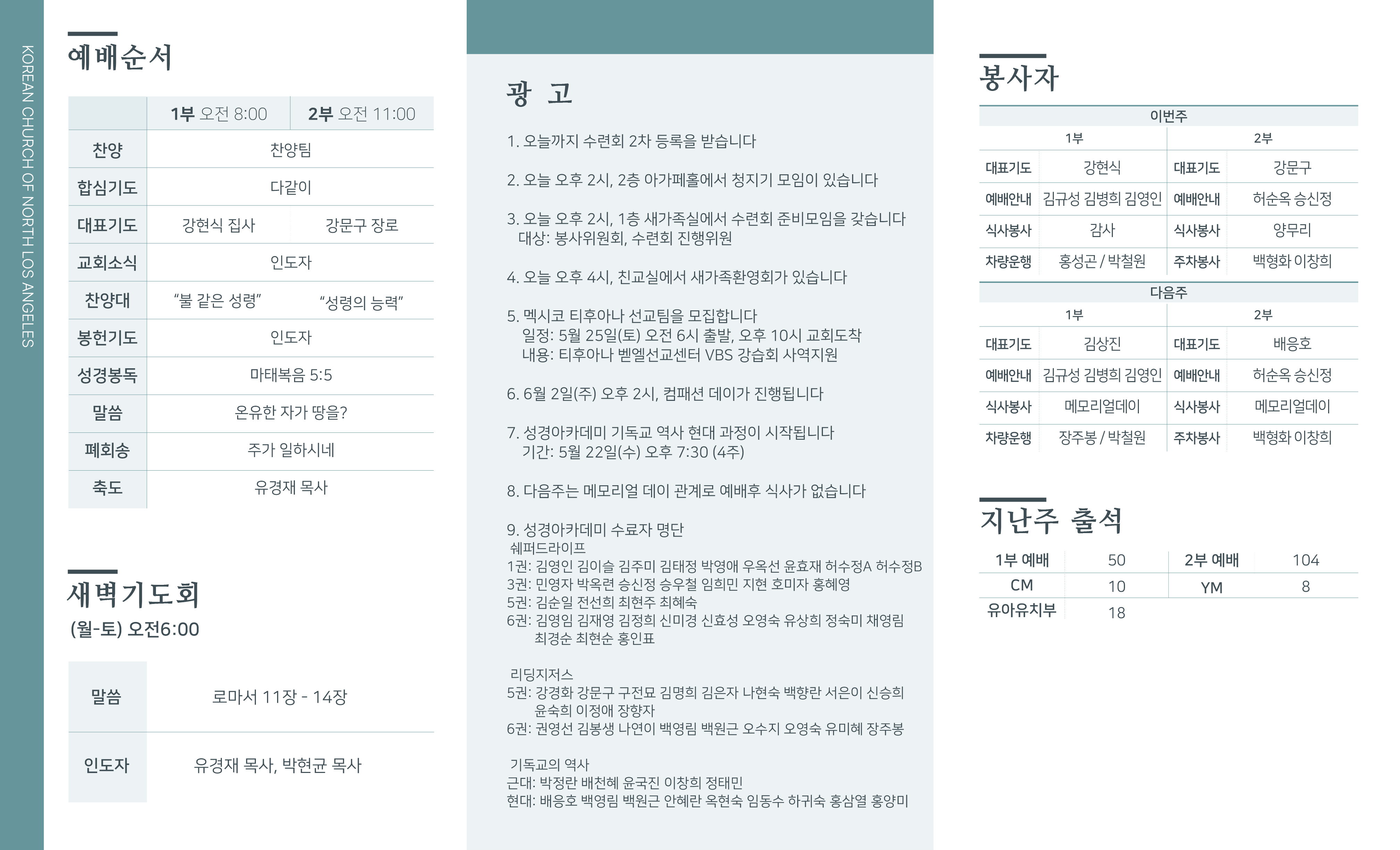 2024년 5월 19일 교회주보 페이지 정보 작성자 나성북부교회 댓글 0건 조회 4,555회 작성일 24-05-21 14:51 목록 본문 2024년 5월 19일 교회주보 이전글2024년 5월 26일 교회주보 24.05.28 다음글2024년 5월 12일 교회주보 24.05.12 목록 댓글 0 댓글목록 등록된 댓글이 없습니다.