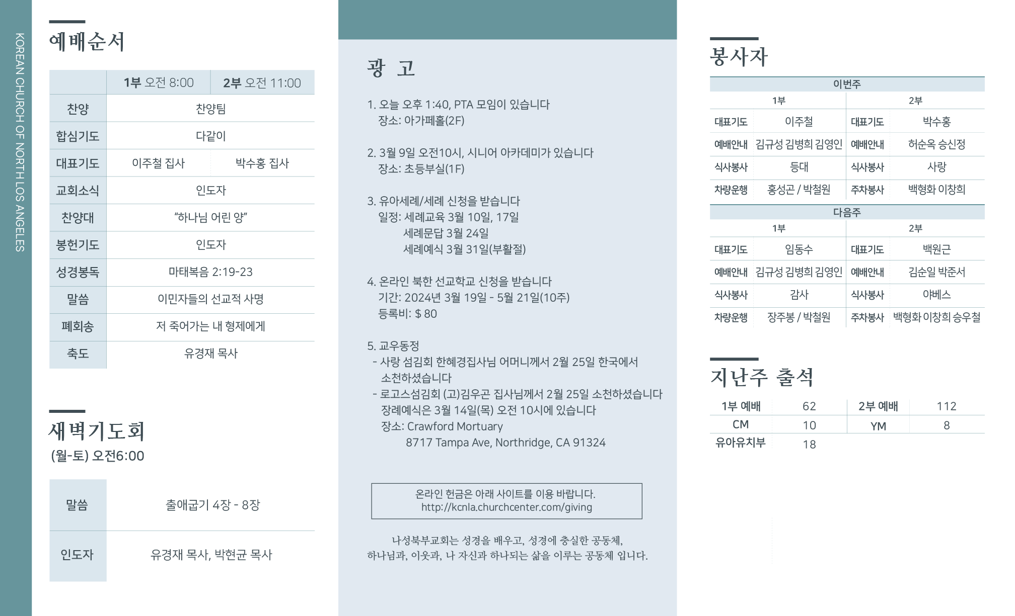2024년 3월 3일 교회주보 페이지 정보 작성자 나성북부교회 댓글 0건 조회 4,069회 작성일 24-03-03 13:06 목록 본문 2024년 3월 3일 교회주보 이전글2024년 3월 10일 교회주보 24.03.13 다음글2024년 2월 25일 교회주보 24.02.28 목록 댓글 0 댓글목록 등록된 댓글이 없습니다.