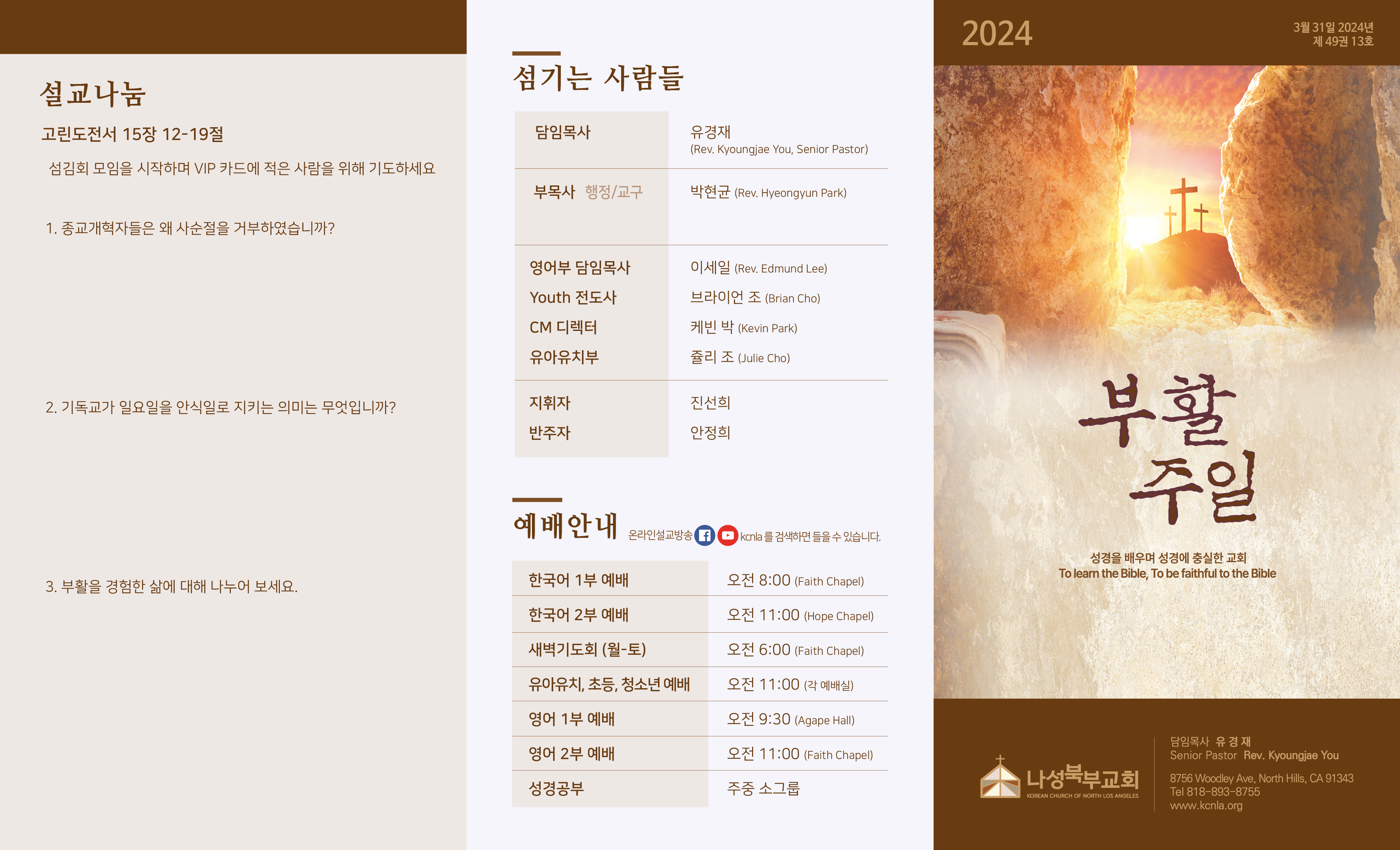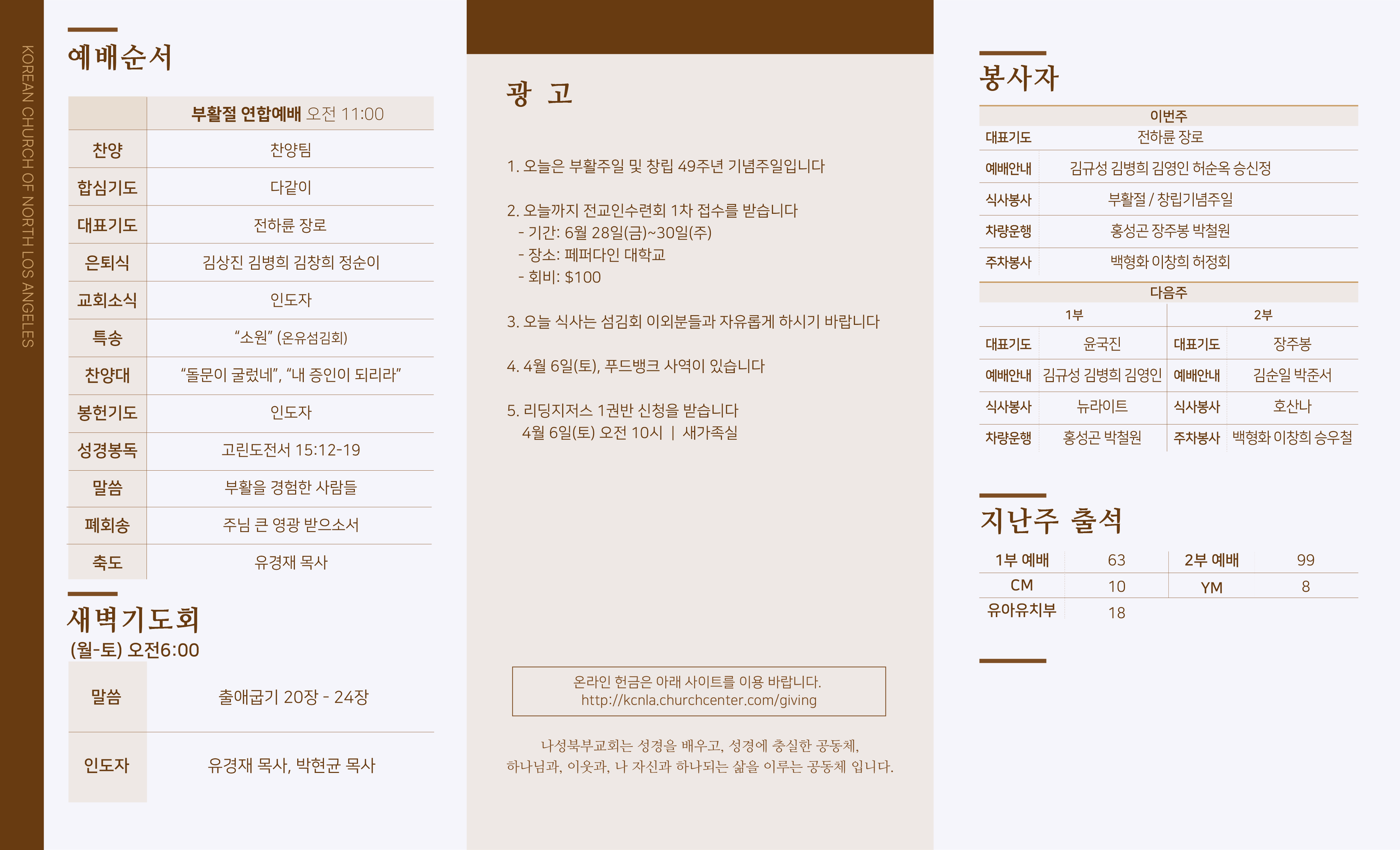 2024년 3월 31일 교회주보 페이지 정보 작성자 나성북부교회 댓글 0건 조회 4,957회 작성일 24-04-02 13:28 목록 본문 2024년 3월 31일 교회주보 이전글2024년 4월 7일 교회주보 24.04.10 다음글2024년 3월 24일 교회주보 24.03.26 목록 댓글 0 댓글목록 등록된 댓글이 없습니다.