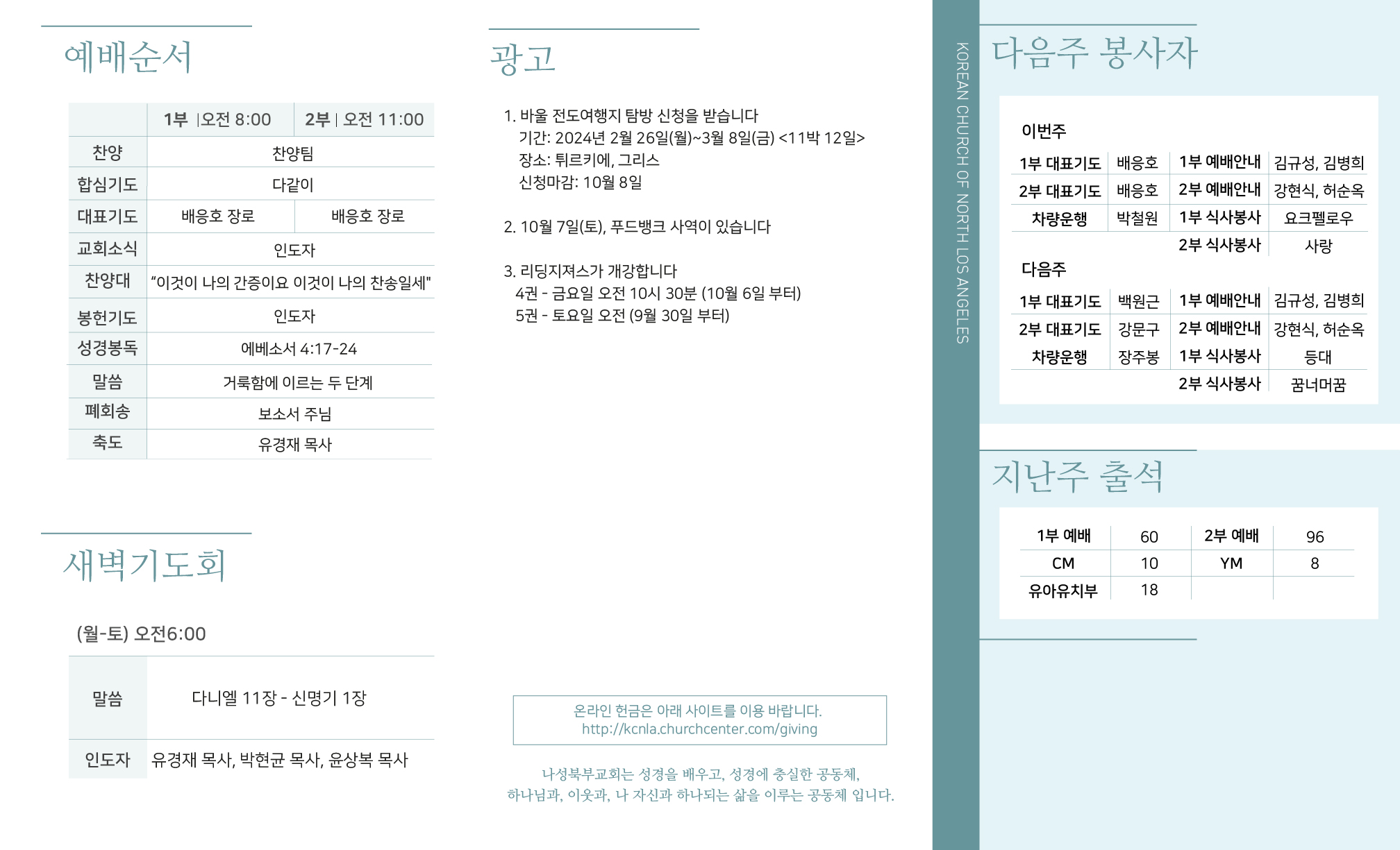 2023년 10월 1일 교회주보 페이지 정보 작성자 나성북부교회 댓글 0건 조회 4,750회 작성일 23-10-10 08:23 목록 본문 2023년 10월 1일 교회주보 이전글2023년 10월 8일 교회주보 23.10.10 다음글2023년 9월 24일 교회주보 23.09.24 목록 댓글 0 댓글목록 등록된 댓글이 없습니다.