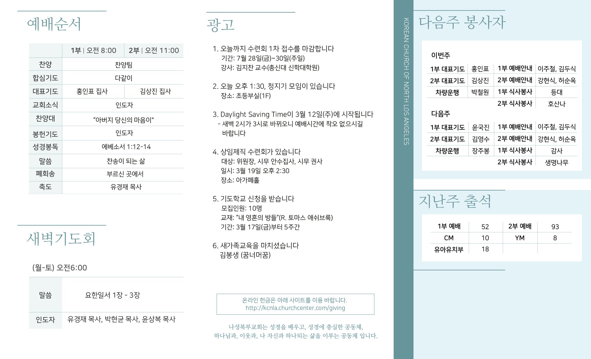 2023년 3월 5일 교회주보 페이지 정보 작성자 kcnla 댓글 0건 조회 5,061회 작성일 23-03-05 15:20 목록 본문 2023년 3월 5일 교회주보 이전글2023년 3월 12일 교회주보 23.03.11 다음글2023년 2월 26일 교회주보 23.02.25 목록 댓글 0 댓글목록 등록된 댓글이 없습니다.