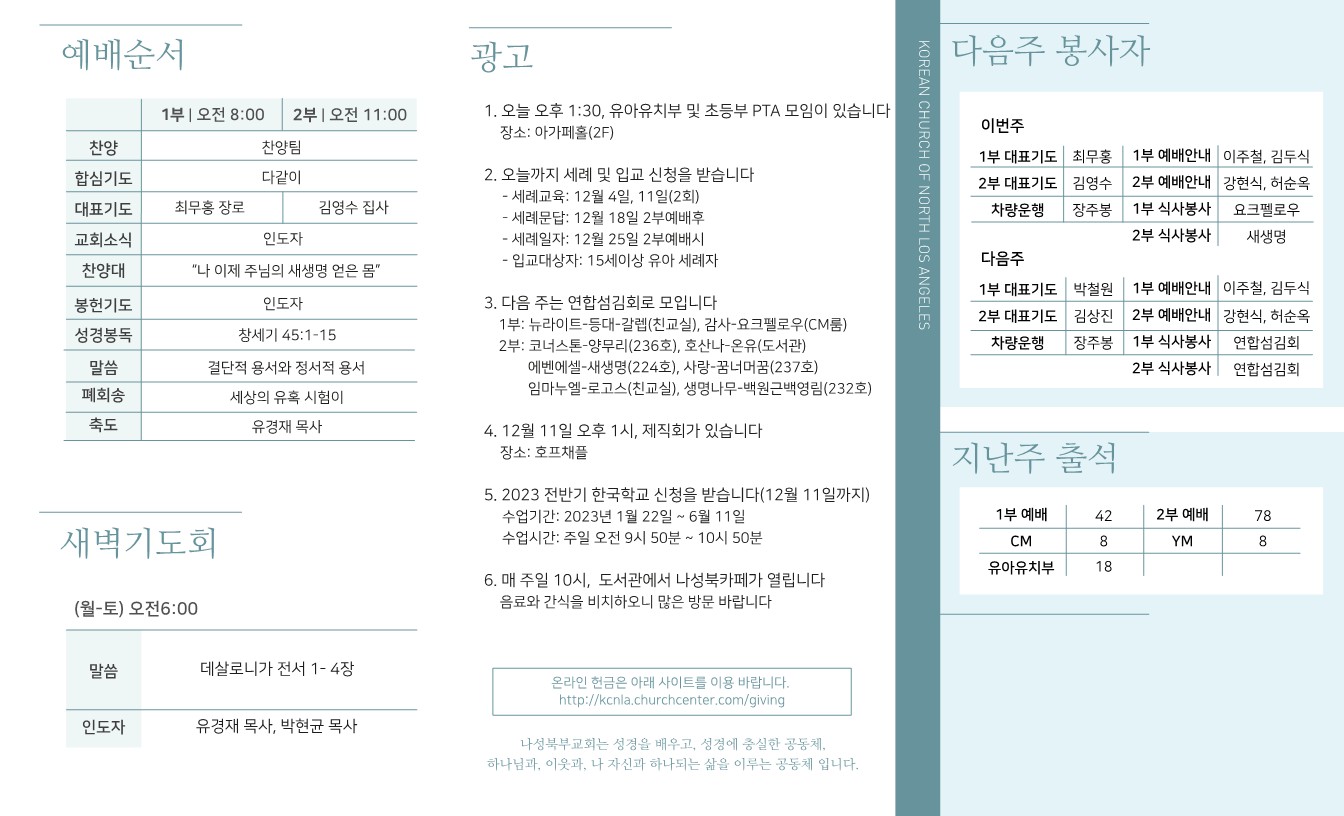 2022년 11월 27일 교회주보 페이지 정보 작성자 나성북부교회 댓글 0건 조회 5,119회 작성일 22-11-26 11:52 목록 본문 2022년 11월 27일 교회주보 이전글2022년 12월 4일 교회주보 22.12.03 다음글2022년 11월 20일 교회주보 22.11.19 목록 댓글 0 댓글목록 등록된 댓글이 없습니다.