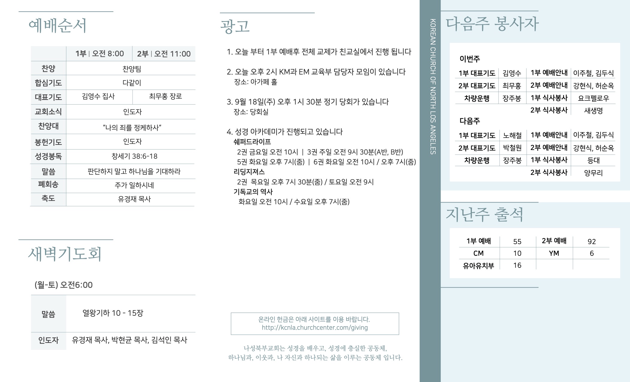 2022년 9월 18일 교회주보 페이지 정보 작성자 나성북부교회 댓글 0건 조회 5,521회 작성일 22-09-17 13:39 목록 본문 2022년 9월 18일 교회주보 이전글2022년 9월 25일 교회주보 22.09.24 다음글2022년 9월 11일 교회주보 22.09.10 목록 댓글 0 댓글목록 등록된 댓글이 없습니다.