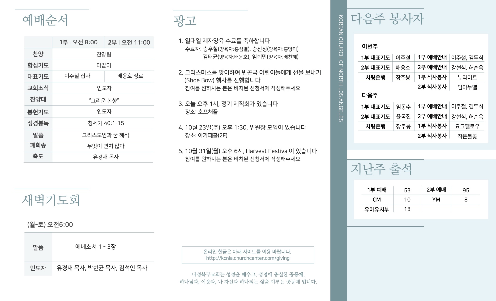 2022년 10월 16일 교회주보 페이지 정보 작성자 나성북부교회 댓글 0건 조회 5,452회 작성일 22-10-15 09:23 목록 본문 2022년 10월 16일 교회주보 이전글2022년 10월 23일 교회주보 22.10.22 다음글2022년 10월 9일 교회주보 22.10.08 목록 댓글 0 댓글목록 등록된 댓글이 없습니다.