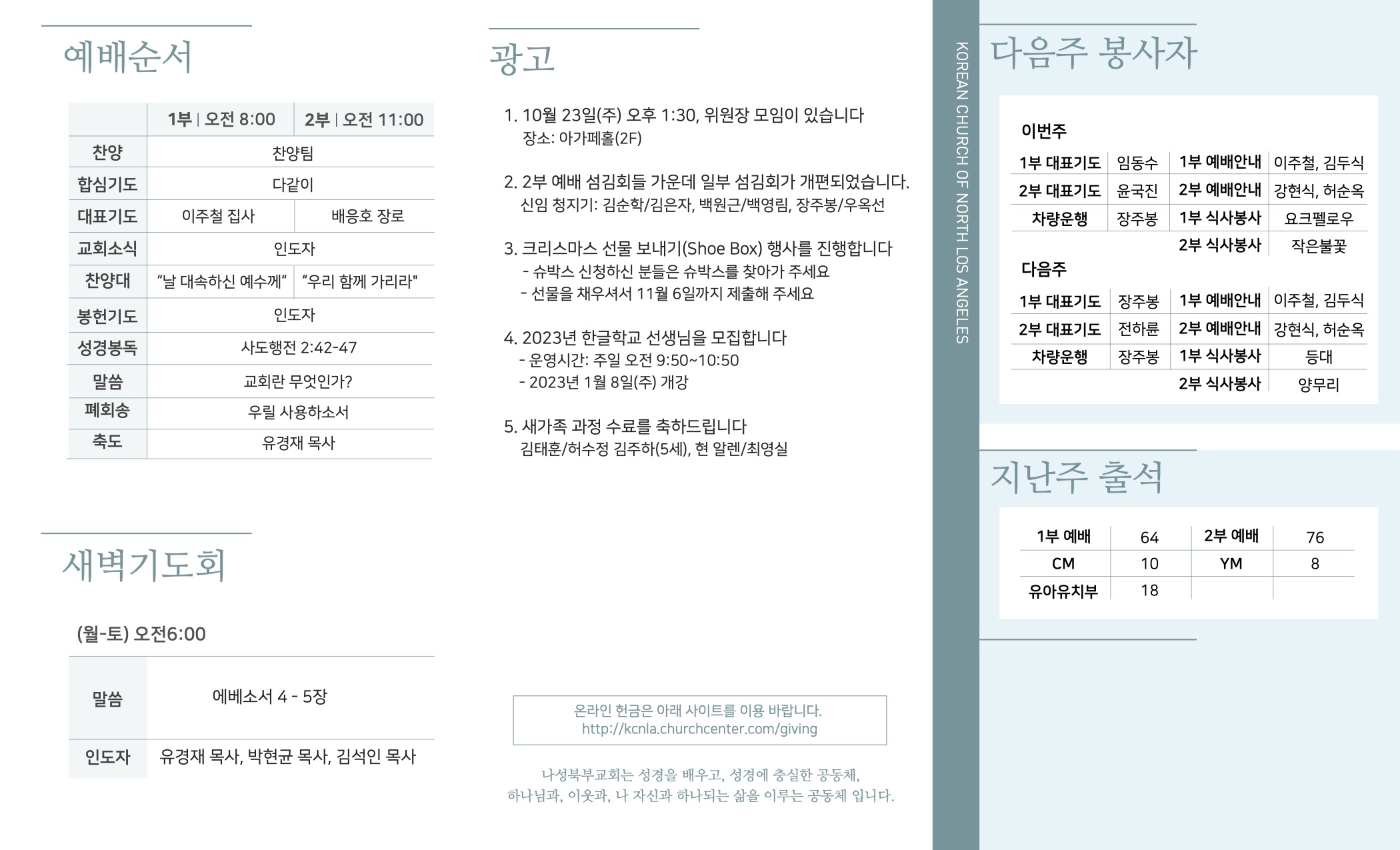2022년 10월 23일 교회주보 페이지 정보 작성자 나성북부교회 댓글 0건 조회 5,931회 작성일 22-10-22 09:48 목록 본문 2022년 10월 23일 교회주보 이전글2022년 10월 30일 교회주보 22.10.29 다음글2022년 10월 16일 교회주보 22.10.15 목록 댓글 0 댓글목록 등록된 댓글이 없습니다.