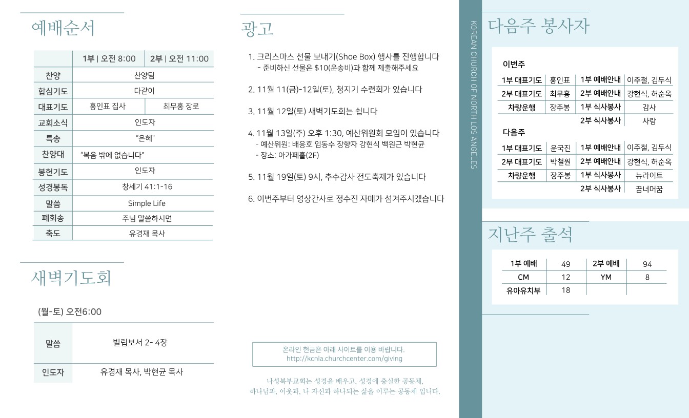 2022년 11월 6일 교회주보 페이지 정보 작성자 나성북부교회 댓글 0건 조회 5,533회 작성일 22-11-05 10:36 목록 본문 2022년 11월 6일 교회주보 이전글2022년 11월 13일 교회주보 22.11.13 다음글2022년 10월 30일 교회주보 22.10.29 목록 댓글 0 댓글목록 등록된 댓글이 없습니다.