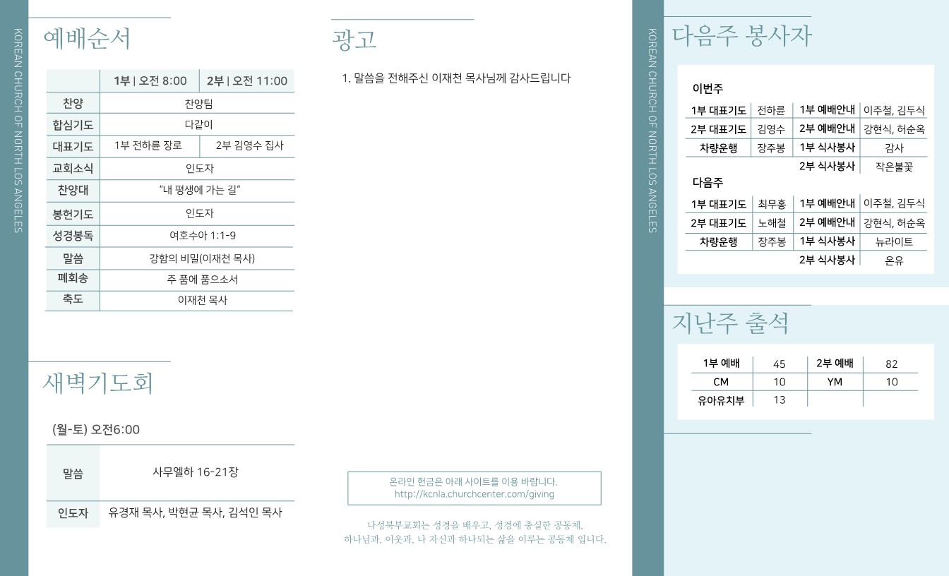 2022년 7월 24일 교회주보 페이지 정보 작성자 kcnla 댓글 0건 조회 5,626회 작성일 22-07-23 09:48 목록 본문 2022년 7월 24일 교회주보 이전글2022년 7월 31일 교회주보 22.07.30 다음글2022년 7월 17일 교회주보 22.07.16 목록 댓글 0 댓글목록 등록된 댓글이 없습니다.
