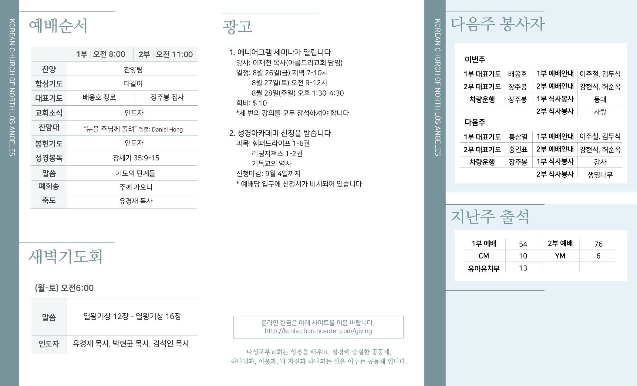 2022년 8월 21일 교회주보 페이지 정보 작성자 나성북부교회 댓글 0건 조회 5,540회 작성일 22-08-20 10:36 목록 본문 2022년 8월 21일 교회주보 이전글2022년 8월 28일 교회주보 22.08.27 다음글2022년 8월 14일 교회주보 22.08.13 목록 댓글 0 댓글목록 등록된 댓글이 없습니다.