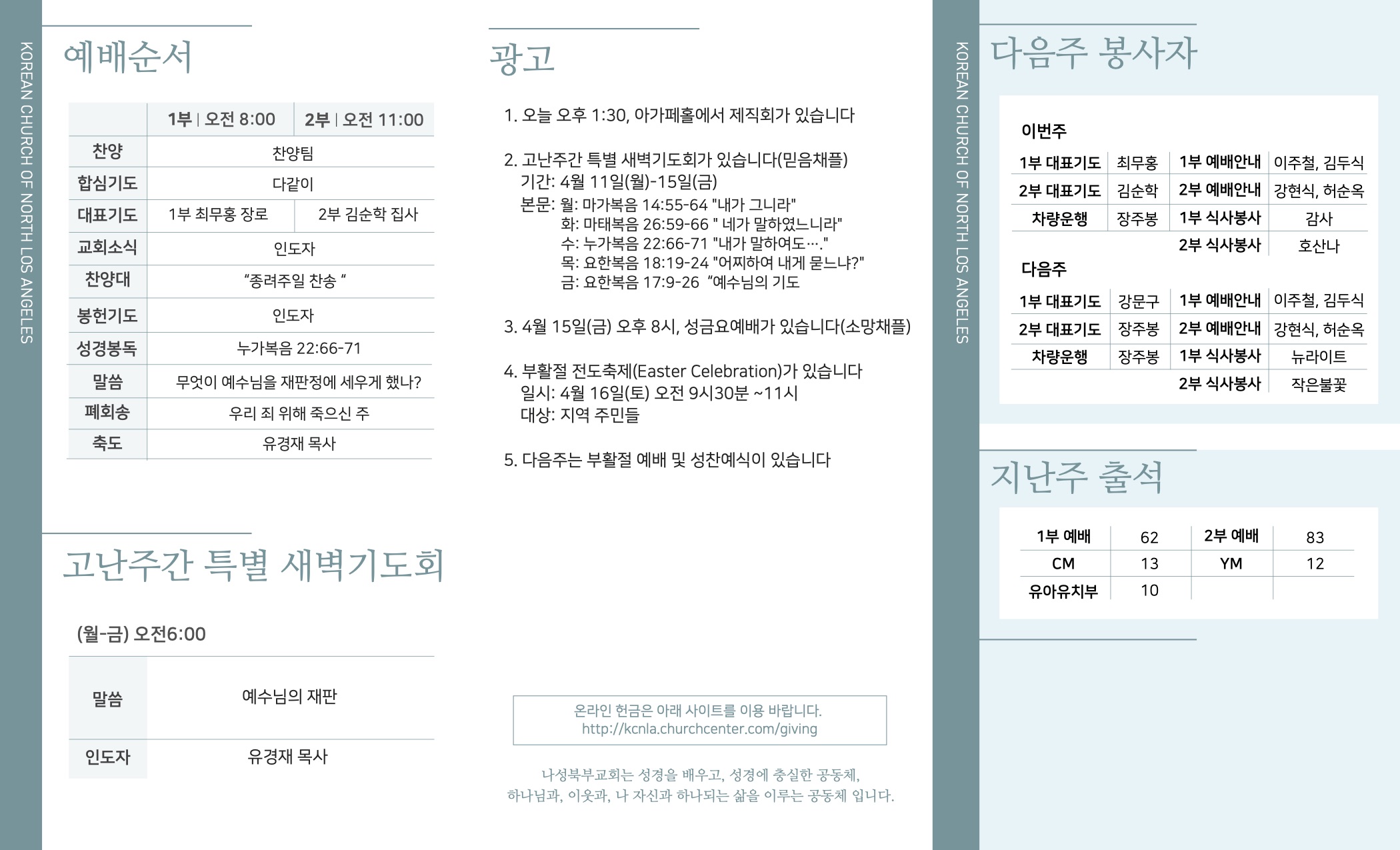 2022년 4월 10일 교회주보 페이지 정보 작성자 나성북부교회 댓글 0건 조회 6,847회 작성일 22-04-09 09:40 목록 본문 2022년 4월 10일 교회주보 이전글2022년 4월 17일 교회주보 22.04.16 다음글2022년 4월 3일 교회주보 22.04.03 목록 댓글 0 댓글목록 등록된 댓글이 없습니다.