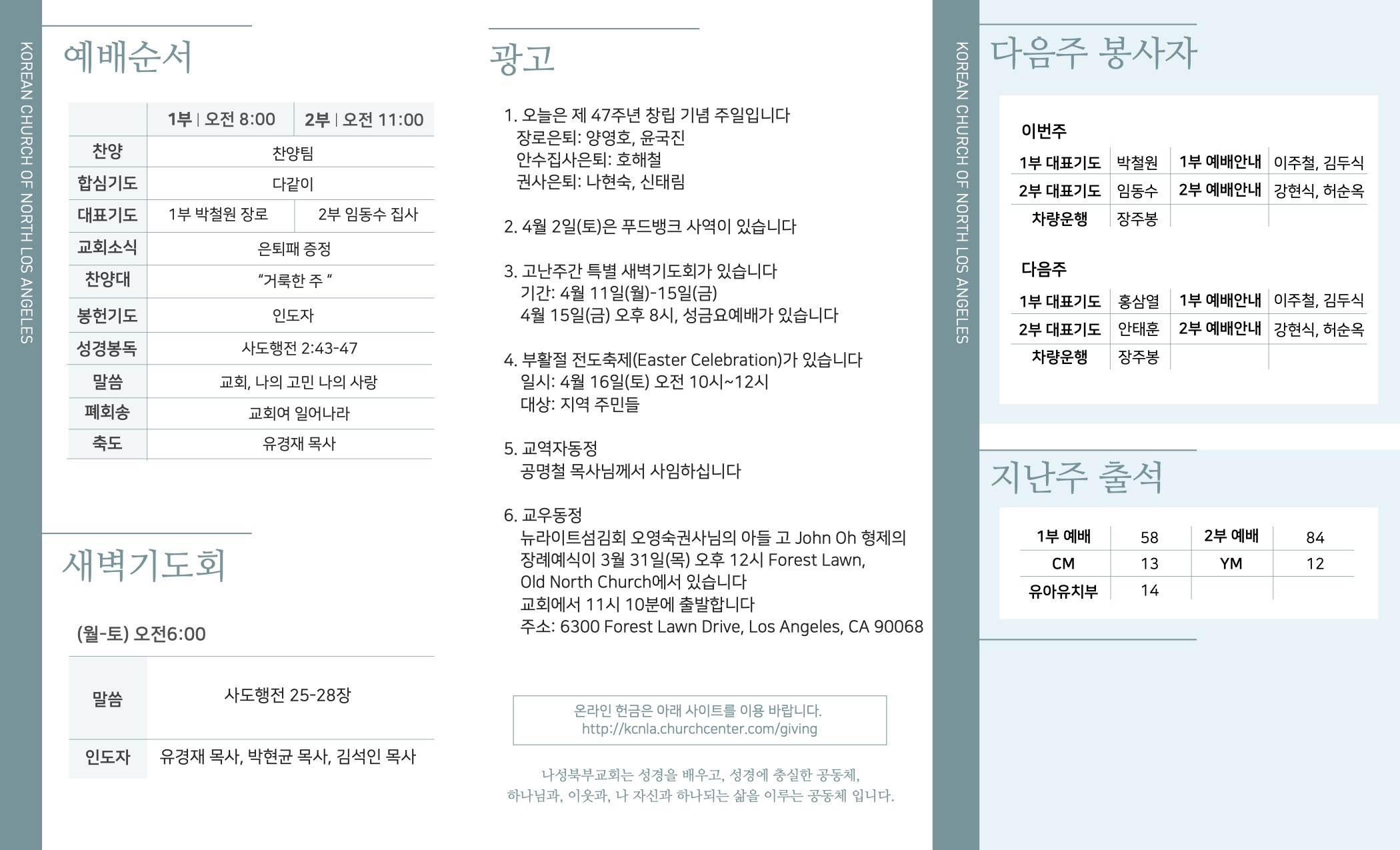 2022년 3월 27일 교회주보 페이지 정보 작성자 나성북부교회 댓글 0건 조회 6,436회 작성일 22-03-25 16:11 목록 본문 2022년 3월 27일 교회주보 이전글2022년 4월 3일 교회주보 22.04.03 다음글2022년 3월 20일 교회주보 22.03.19 목록 댓글 0 댓글목록 등록된 댓글이 없습니다.