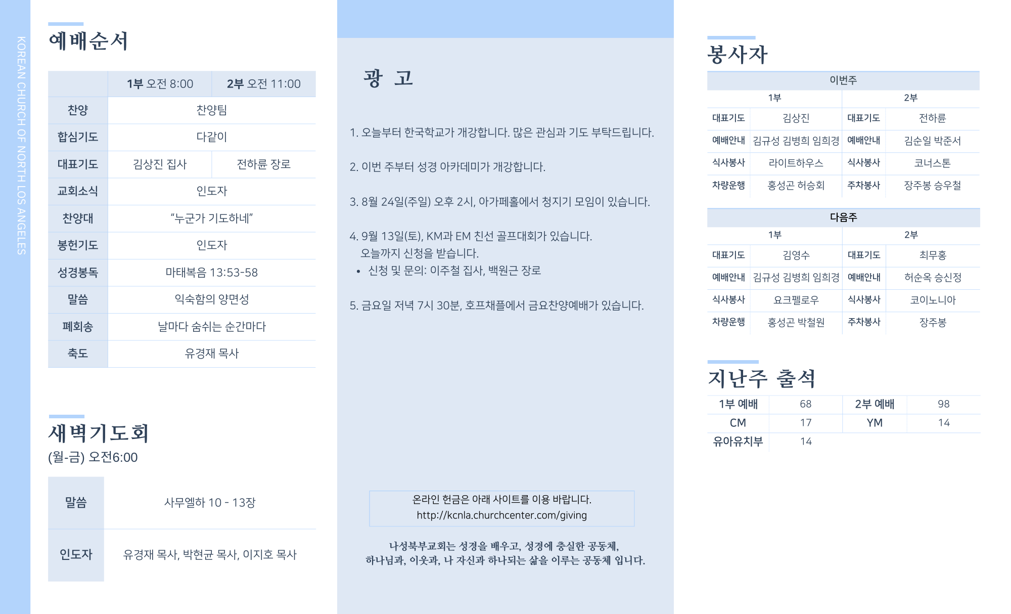 2025년 8월 17일 교회주보 페이지 정보 작성자 나성북부교회 댓글 0건 조회 1,798회 작성일 25-08-16 09:49 목록 본문 2025년 8월 17일 교회주보 이전글2025년 8월 24일 교회주보 25.08.23 다음글2025년 8월 10일 교회주보 25.08.09 목록 댓글 0 댓글목록 등록된 댓글이 없습니다.