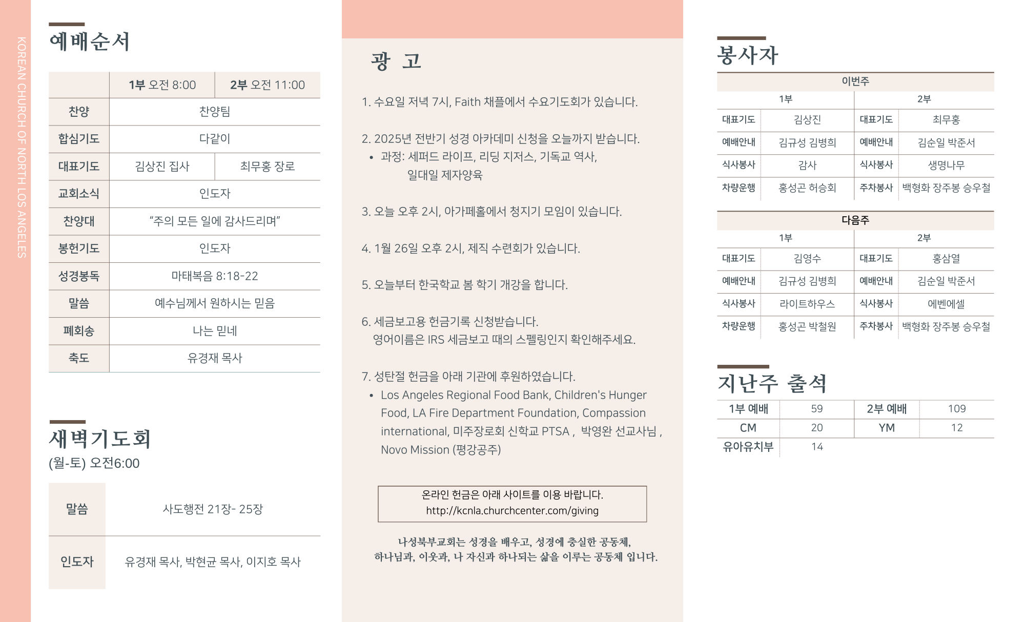 2025년 1월 19일 교회주보 페이지 정보 작성자 나성북부교회 댓글 0건 조회 2,865회 작성일 25-01-18 10:04 목록 본문 2025년 1월 19일 교회주보 이전글2025년 1월 26일 교회주보 25.01.25 다음글2025년 1월 12일 교회주보 25.01.12 목록 댓글 0 댓글목록 등록된 댓글이 없습니다.
