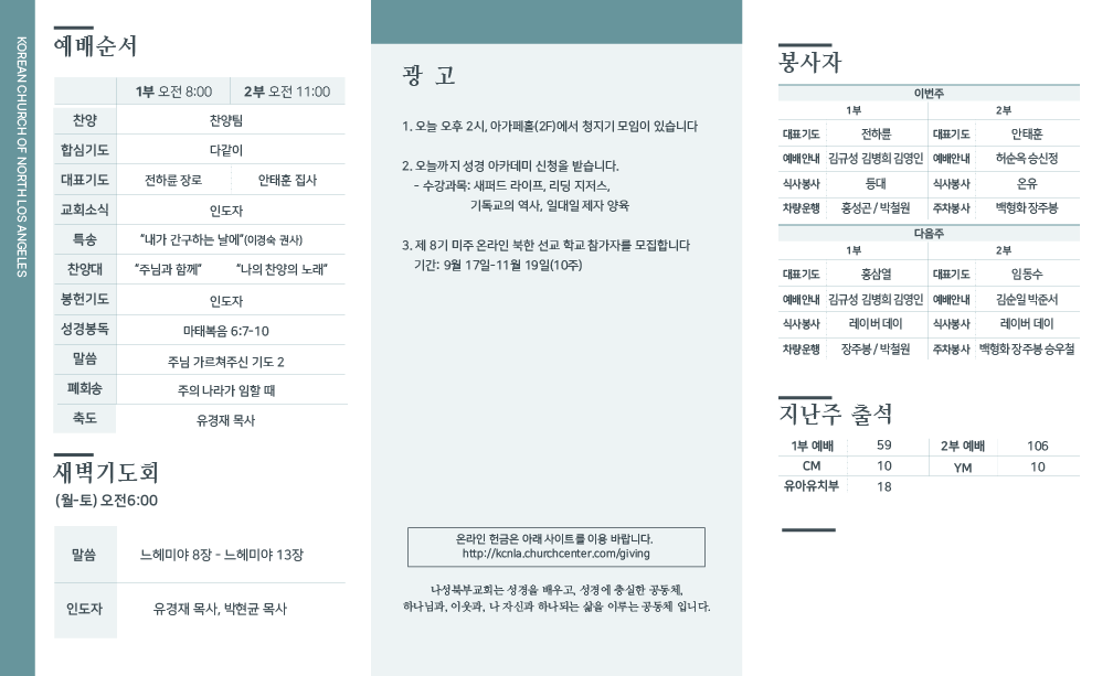 2024년 8월 25일 교회주보 페이지 정보 작성자 나성북부교회 댓글 0건 조회 3,357회 작성일 24-08-27 14:17 목록 본문 2024년 8월 25일 교회주보 이전글2024년 9월 1일 교회주보 24.09.03 다음글2024년 8월 18일 교회주보 24.08.21 목록 댓글 0 댓글목록 등록된 댓글이 없습니다.