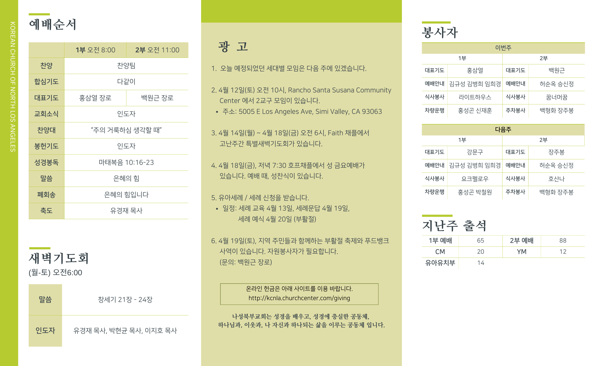 2025년 4월 6일 교회주보 페이지 정보 작성자 나성북부교회 댓글 0건 조회 2,321회 작성일 25-04-05 11:37 목록 본문 2025년 4월 6일 교회주보 이전글2025년 4월 13일 교회주보 25.04.12 다음글2025년 3월 30일 교회주보 25.03.29 목록 댓글 0 댓글목록 등록된 댓글이 없습니다.