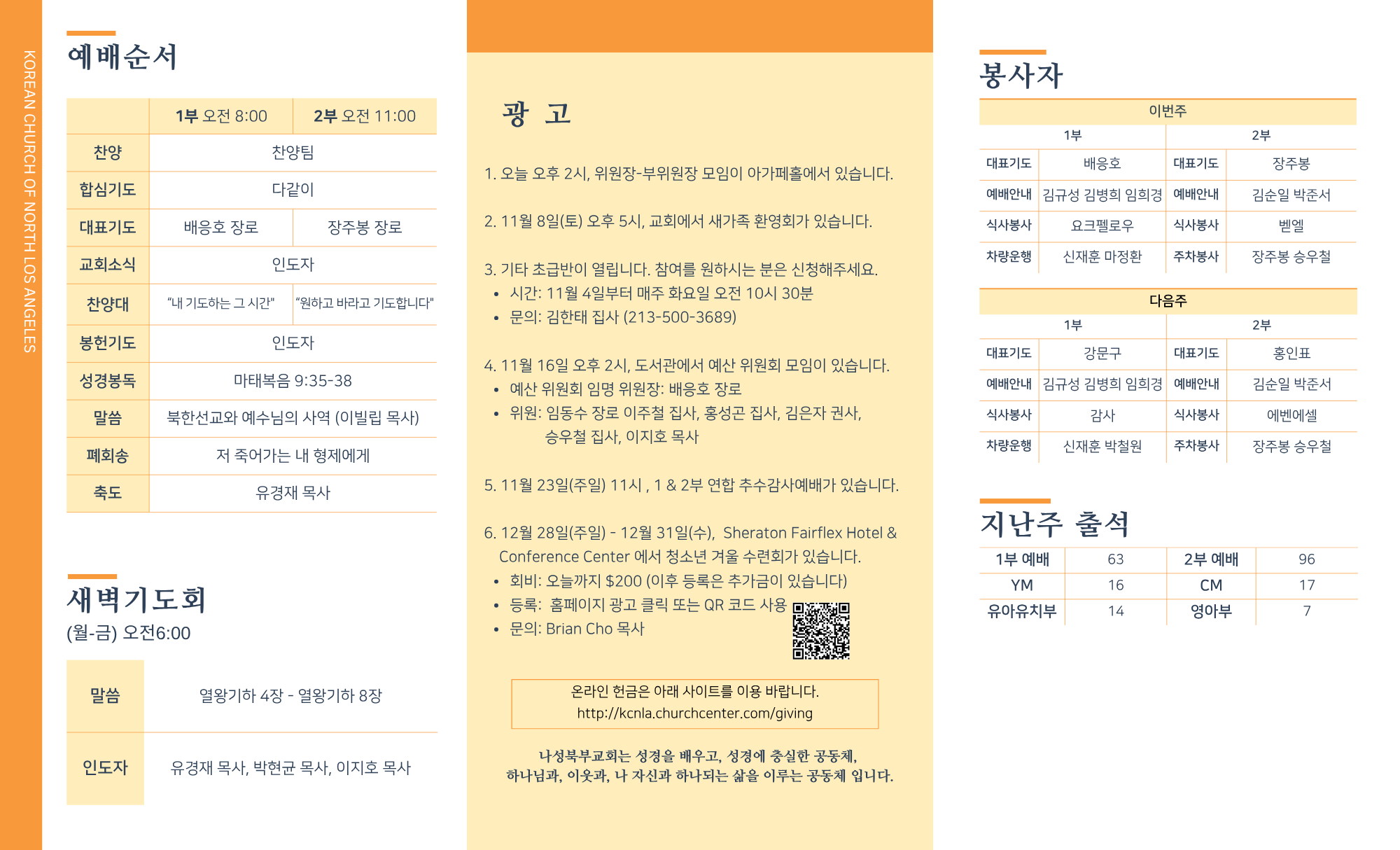 2025년 11월 2일 교회주보 페이지 정보 작성자 나성북부교회 댓글 0건 조회 604회 작성일 25-11-01 10:46 목록 본문 2025년 11월 2일 교회주보 이전글2025년 11월 9일 교회주보 25.11.08 다음글2025년 10월 26일 교회주보 25.10.25 목록 댓글 0 댓글목록 등록된 댓글이 없습니다.