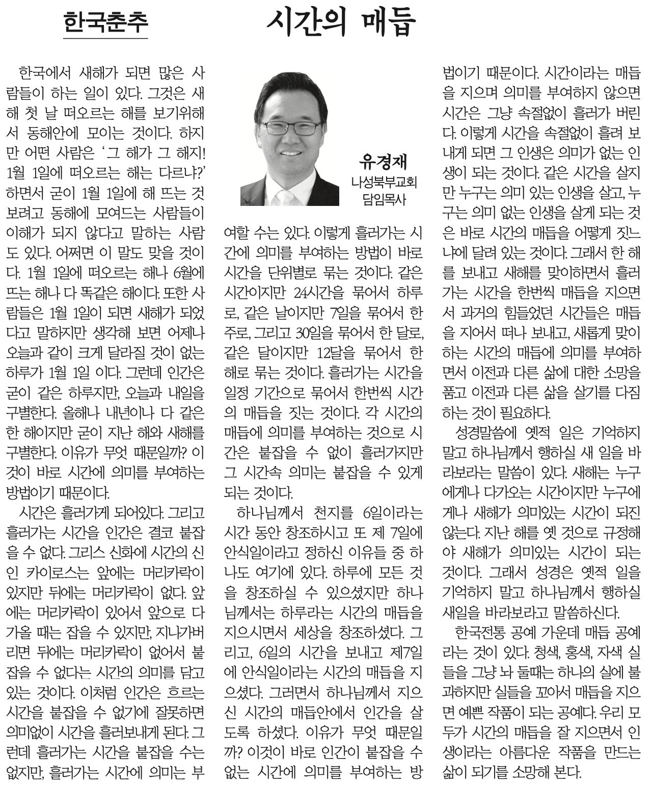시간의 매듭 (미주한국일보 2025년 1월 24일 칼럼) Publish on January 31,2025 | 나성북부교회