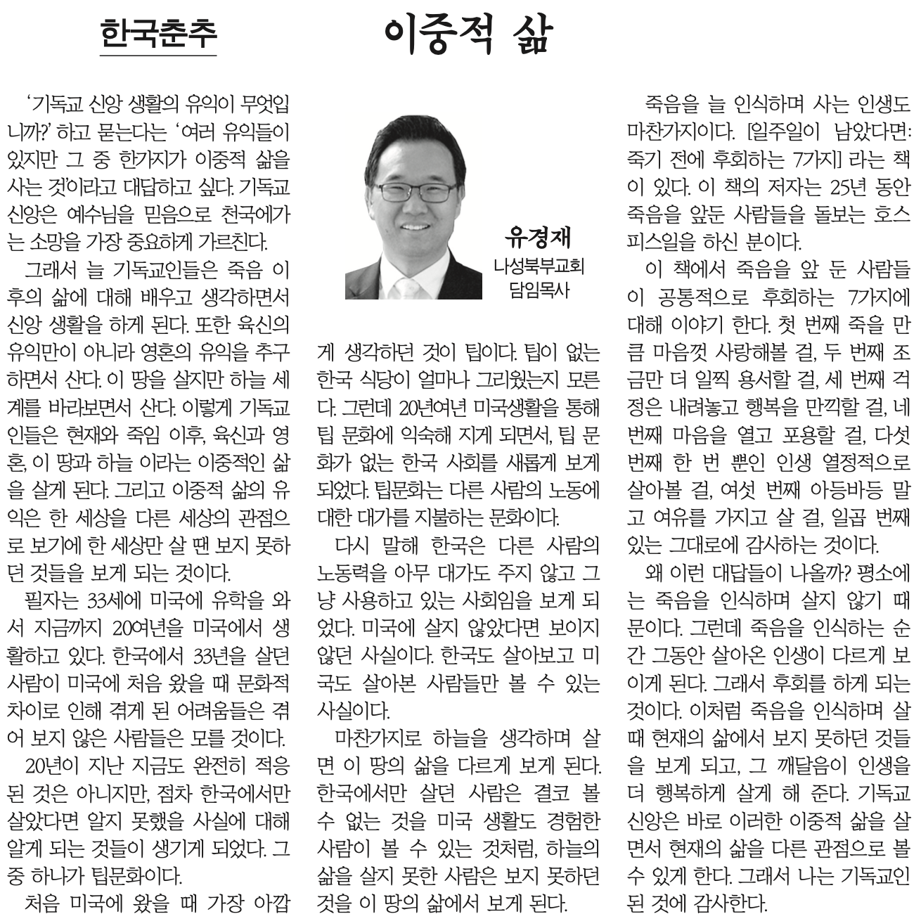 이중적 삶 (미주한국일보 2025년 7월 11일 칼럼) Publish on July 15,2025 | 나성북부교회